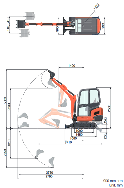 1.5 ton tracked excavator for hire. It can be used for both small commercial and domestic use when digging gardens or excavating earth. This digger has excellent manoeuvrability with a length of 3.6m and a width of .9m.